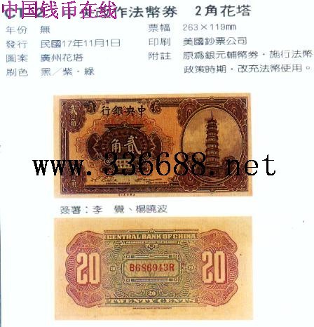 [图文]中央改作法币券  2角花塔         ★★★