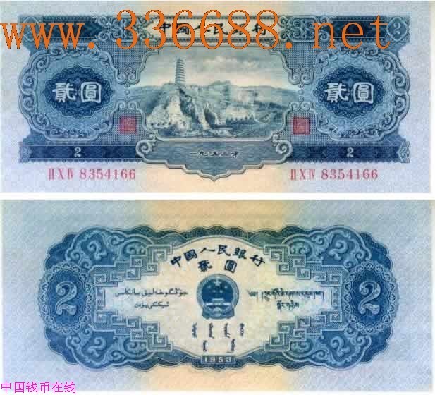 [图文]第二版人民币1953年2圆尾号66(全新)