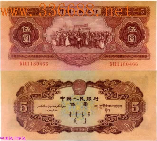 [图文]第二版人民币1953年5圆尾号66(全新)