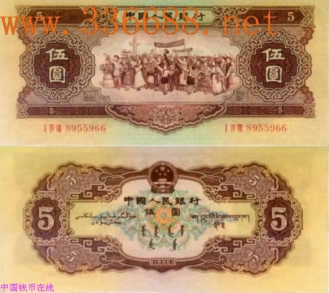 [图文]第二版人民币1956年5圆五星水印尾号66(全新)