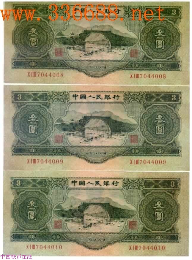 [图文]1953年第二版人民币叁圆(3张全新连号)