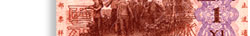 四、两种直角券上的暗记 暗记即暗藏的记号,是票券传统防伪的重要手段和措施,一般采用微雕技术将暗记做得极其微小,具有很强的隐蔽性。上述两种壹角券均设有暗记。1960年版红壹角券在独轮车前着浅色衣服人的裤子上刻有一颗空心五角星。1962年版绿壹角券上的暗记可谓千变万化。在最初发行的背绿票券钞纸为空心五角星水印纸时,在正面图案中大门右侧第六与第七根栏杆之间的上端有一英文字母“A”,“A”下有一个“一”,在“A”左上方还有一个英文字母“J”; 在改用无水印纸后,又增加了两个暗记,一是“A”下的“-”变为“十”,二是在“副行长章”的左上方增加了一个“人”字;该券背面由墨绿色改为浅棕色后,“人”字消失;当该券由凹印改为胶印后,“A”下的“十”又变成了“·”,同时在左数第二人的手腕上增加了一个“中’字。