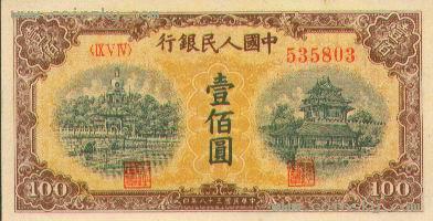 第一版人民币100元黄色北…