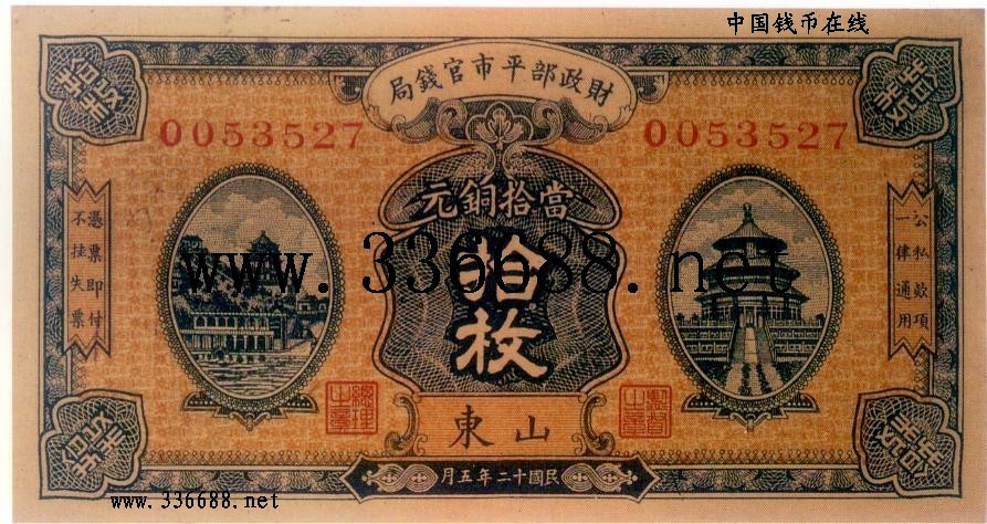 [图文]民国12年铜元票   10枚山东         ★★★