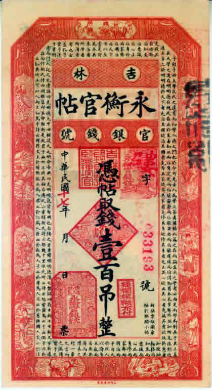 [图文]吉林省永衡官贴民国17年100吊