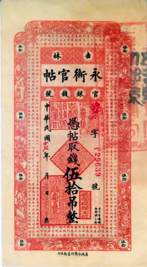 您现在的位置: 钱币在线 >> 省行纸币 >> 吉林省永衡官贴 >> 正文