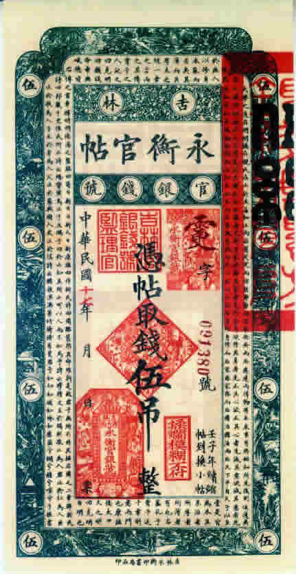 [图文]吉林省永衡官贴民国17年5吊