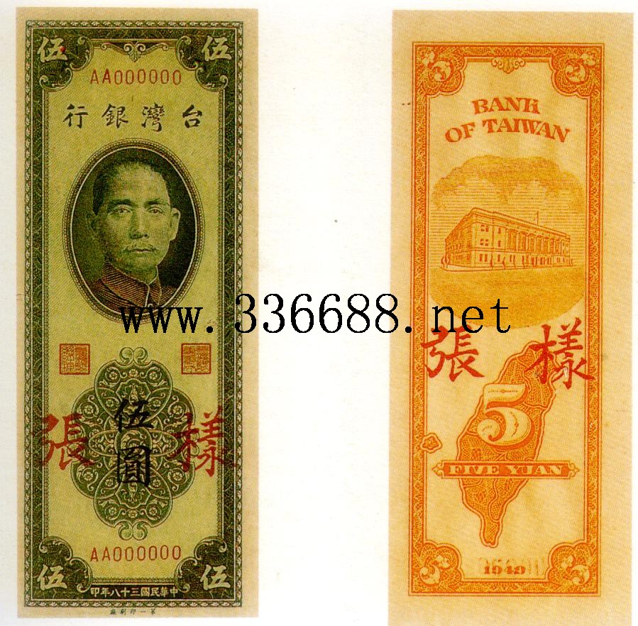 [组图]民国38年(1949)新台币   5元绿色         ★★★