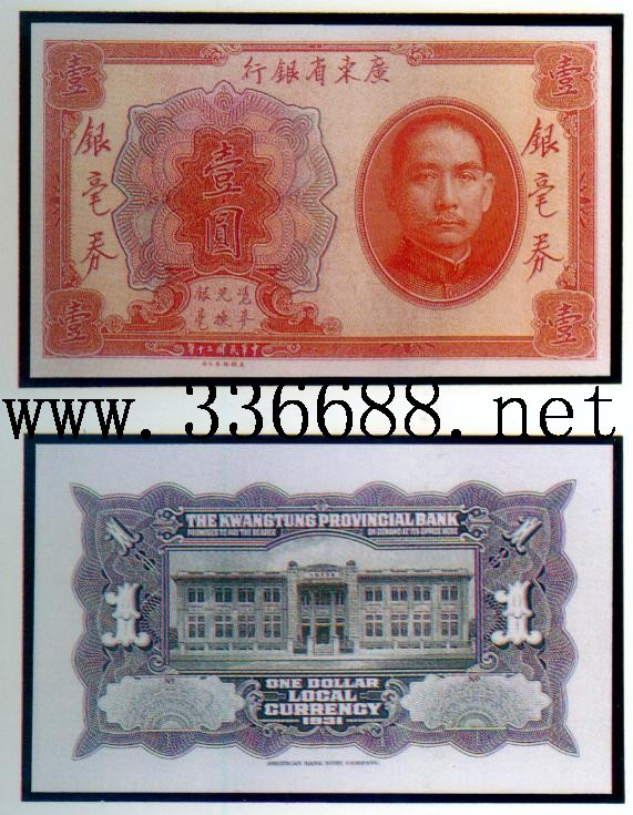 [组图]广东省银行民国20年(1931)银毫券   1元         ★★★