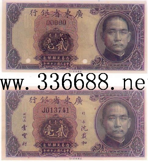 [组图]广东省银行民国24年(1935)银毫辅币券   2毫         ★★★