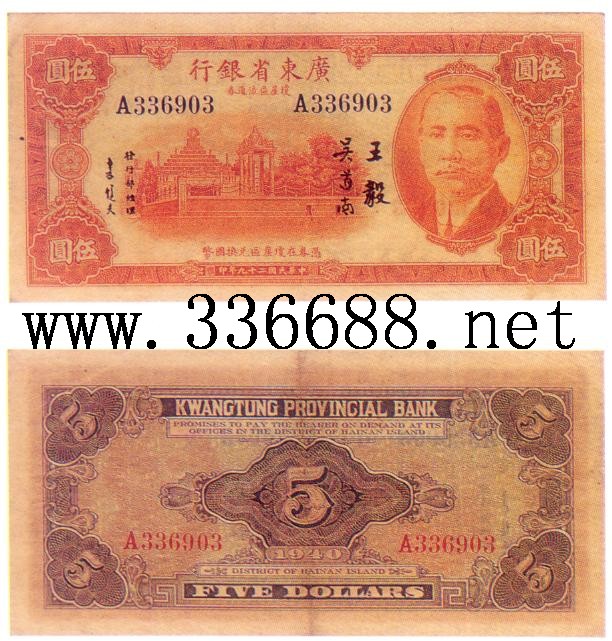 [图文]广东省银行民国29年(1940)   5元         ★★★