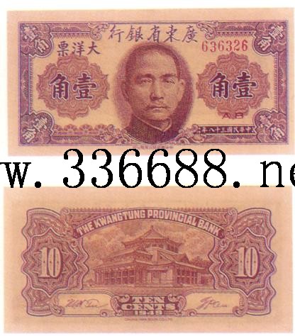 [图文]广东省银行民国38年(1949)大洋票     1角         ★★★