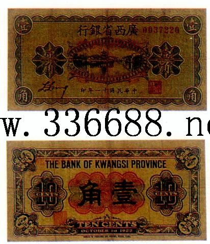 [图文]广西银行民国11年(1922)辅币券   1角         ★★★