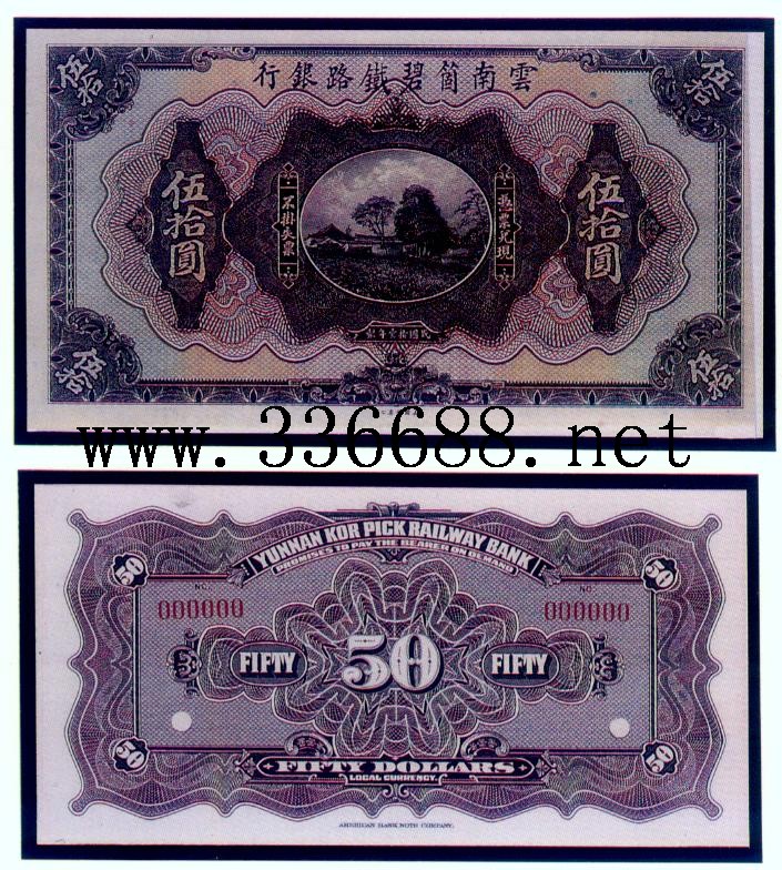 [组图]云南箇碧铁路银行民国11年(1922)  50元         ★★★