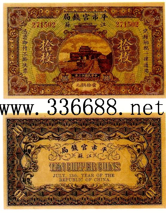 [图文]江苏平市官钱局民国13年(1924)铜元票   10枚         ★★★