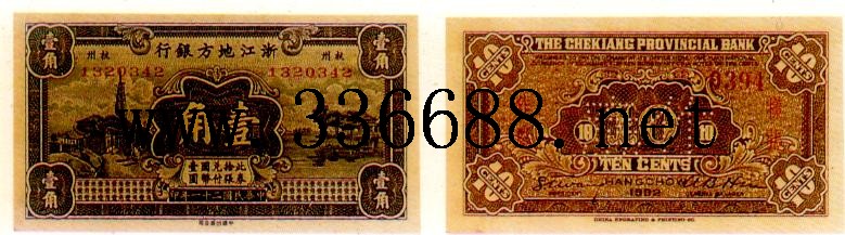 [图文]浙江地方银行民国21年(1932)银元券   1角         ★★★