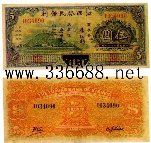 [图文]江西裕民银行民国22年(1933)银元票   5元         ★★★