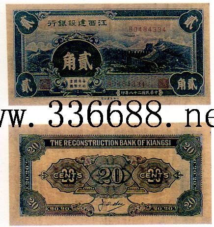 [图文]江西建设银行民国28年(1939)铜元票   2角         ★★★