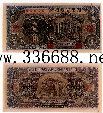 [图文]湖南省银行民国19年(1930)银元票   1角         ★★★