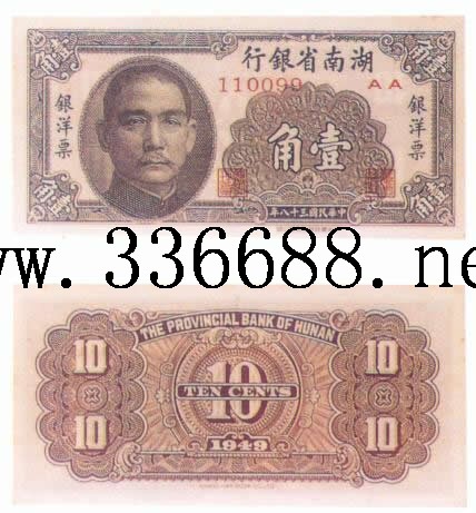 [图文]湖南省银行民国38年(1949)银元券   1角         ★★★