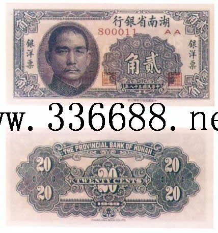 [图文]湖南省银行民国38年(1949)银元券   2角         ★★★