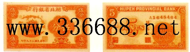 [图文]湖北省银行民国29年(1940)   5分         ★★★