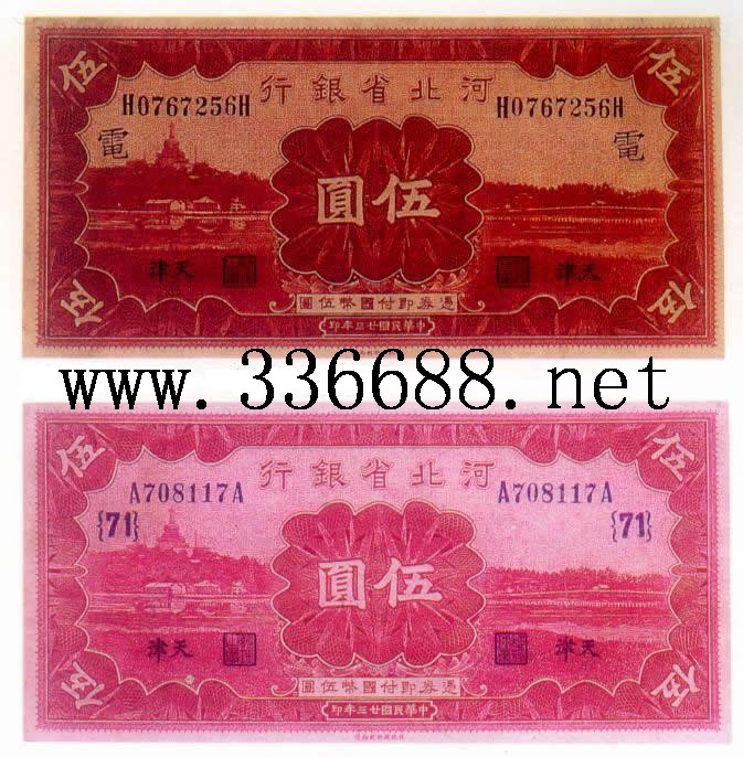 [组图]河北省银行民国23年(1934)银元票   5元         ★★★