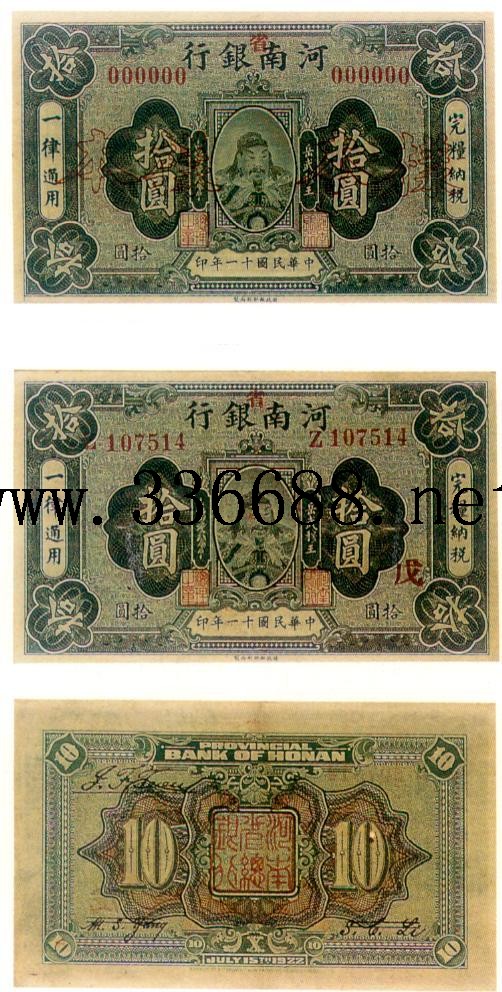 [图文]河南省银行民国11年(1922)银元券  10元         ★★★