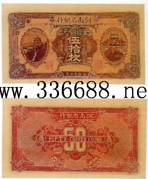 [图文]河南省银行民国12年(1923)铜元票  50枚         ★★★