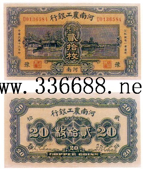 [图文]河南省农工银行民国19年(1930)铜元券   20枚         ★★★