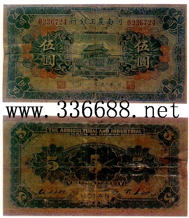 [图文]河南省农工银行民国20年(1931)匯兑券   5元         ★★★