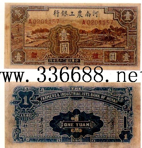 [图文]河南省农工银行民国26年(1940)匯兑券   1元         ★★★