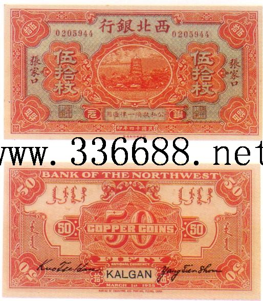 [图文]西北银行民国14年(1925)铜元券   50枚         ★★★