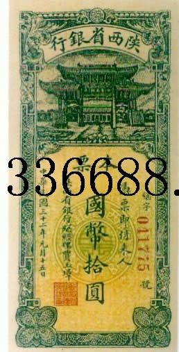 [图文]陕西省银行民国32年(1943)国币本票   10元         ★★★