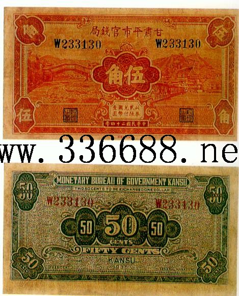 [图文]甘肃平市官钱局民国24年(1935)银元票   5角         ★★★