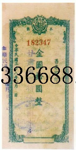 [图文]甘肃省银行民国38年(1949)金元本票   10元         ★★★
