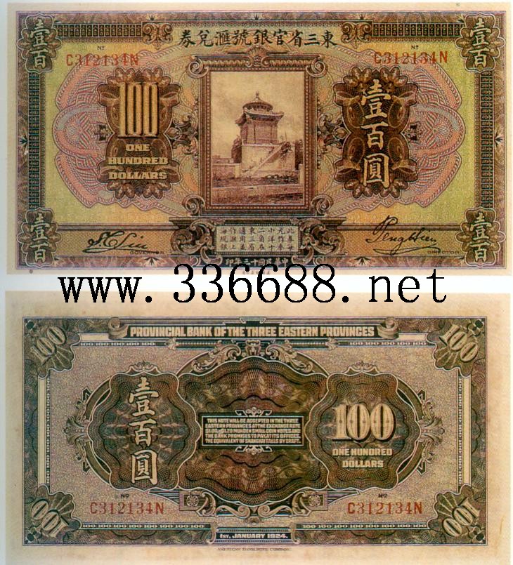 [图文]东三省官银号民国13年(1924)匯兑大洋券   100元         ★★★