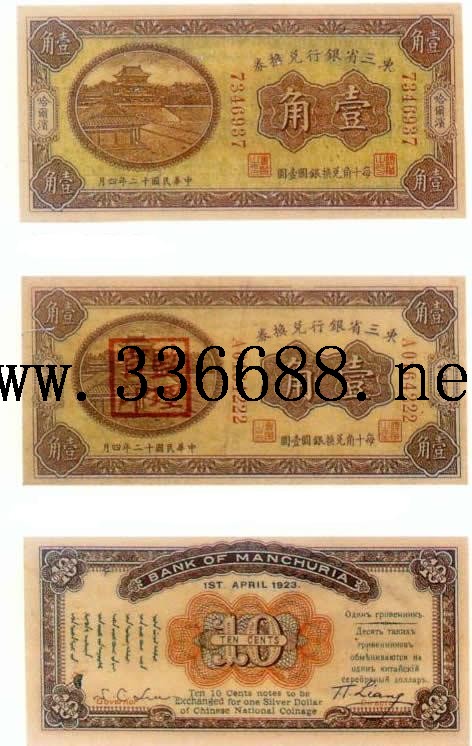 [图文]东三省银行民国12年(1923)匯兑大洋券   1角         ★★★