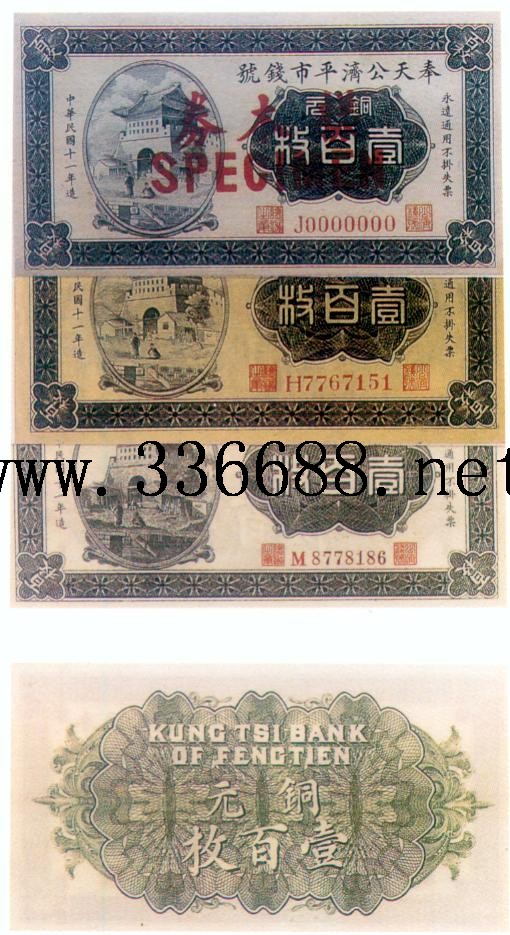 [图文]奉天公济平市钱号民国11年(1922)铜元票   100枚         ★★★