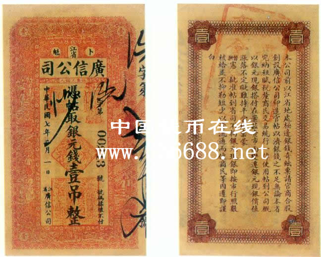 [图文]黑龙江广信公司民国7年(1918)官帖   1吊         ★★★