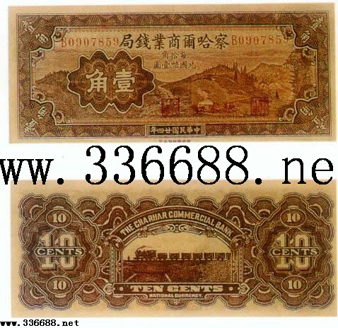 [图文]察哈尔商业钱局民国24年(1935)银元票   1角         ★★★