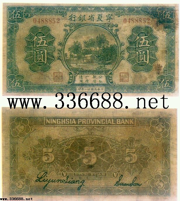 [图文]宁夏省银行民国21年(1932)银元券   5元         ★★★