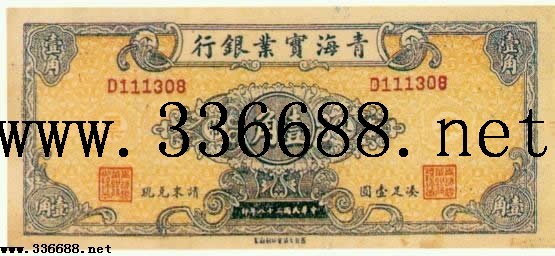 [图文]青海实业银行民国38年(1949)银元券   1角         ★★★