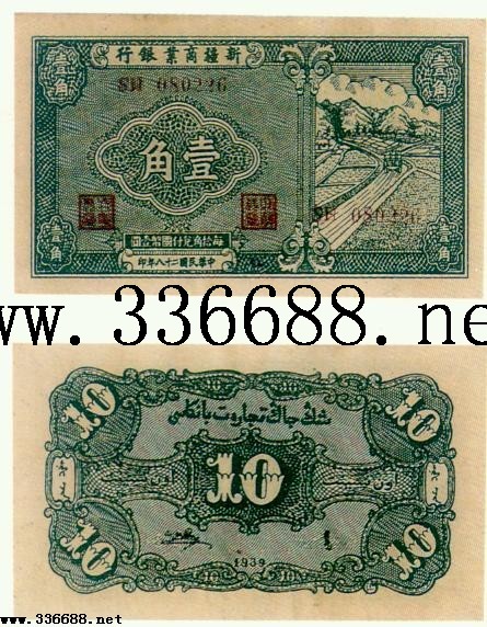 [图文]新疆商业银行民国28年(1939)   1角         ★★★