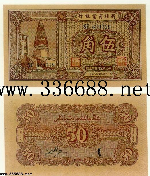[图文]新疆商业银行民国28年(1939)   5角         ★★★