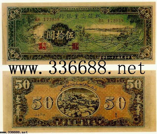 [图文]新疆商业银行民国28年(1939)   50元         ★★★
