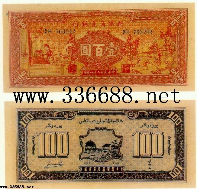 [图文]新疆商业银行民国28年(1939)   100元         ★★★
