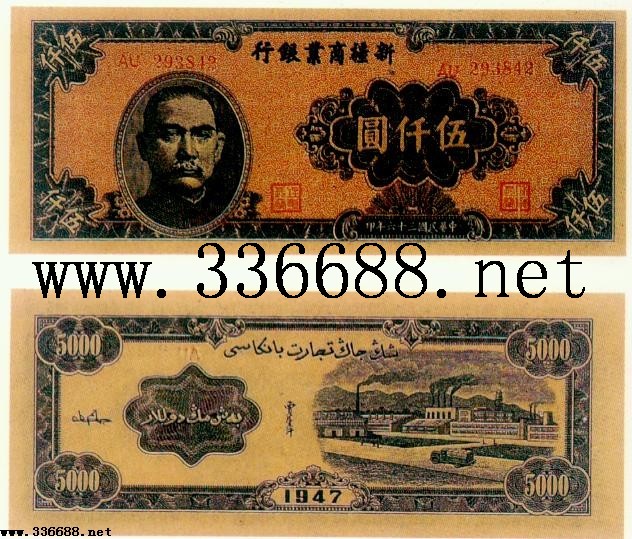 [图文]新疆商业银行民国36年(1947)   5000元         ★★★