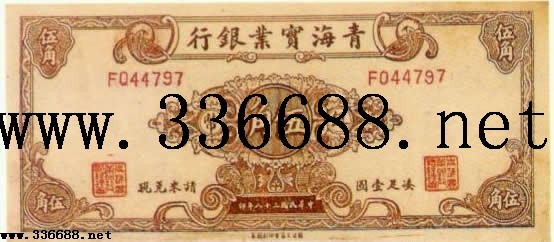 普通省行纸币[青海省银行纸币][图文]青海实业银行民国38年(1949)银元券   5角刘扬01-03