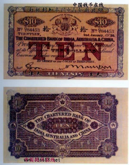 [图文]1928年印度新金山中国麦加利银行   10元         ★★★